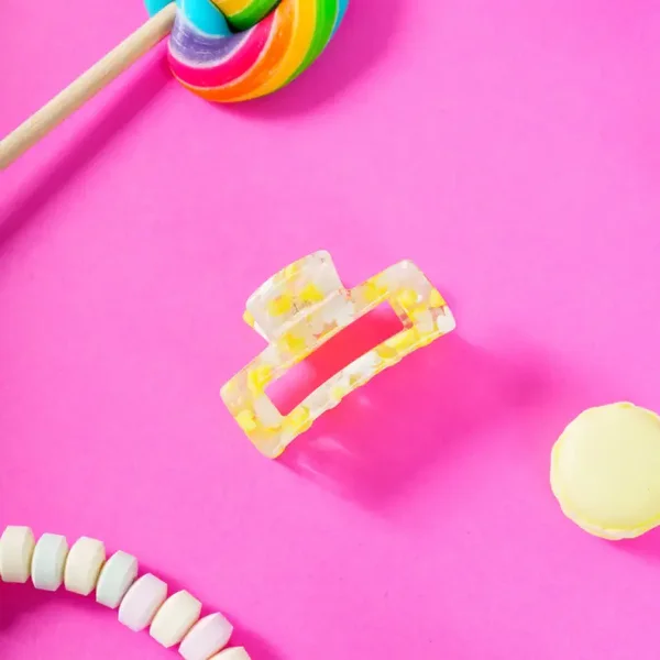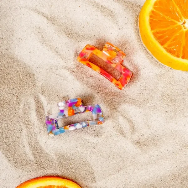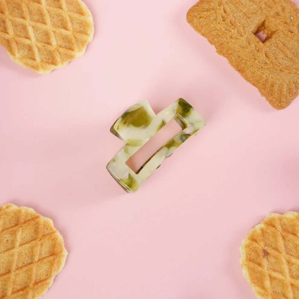 Kleine vierkante clip die zéér stevig knijpt. Deze blijft perfect de hele dag zitten in jouw haar.